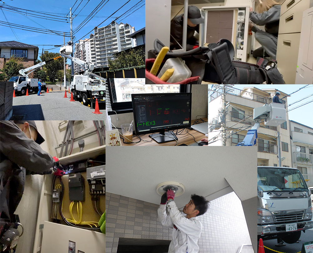 携帯基地局事業をはじめ、ケーブルテレビ・光ファイバー、LEDや太陽光などの省エネ関連製品、公共関連などの工事分野を軸に幅広く事業展開をしており、将来的にはキッティング作業など新たな事業展開も検討しています。